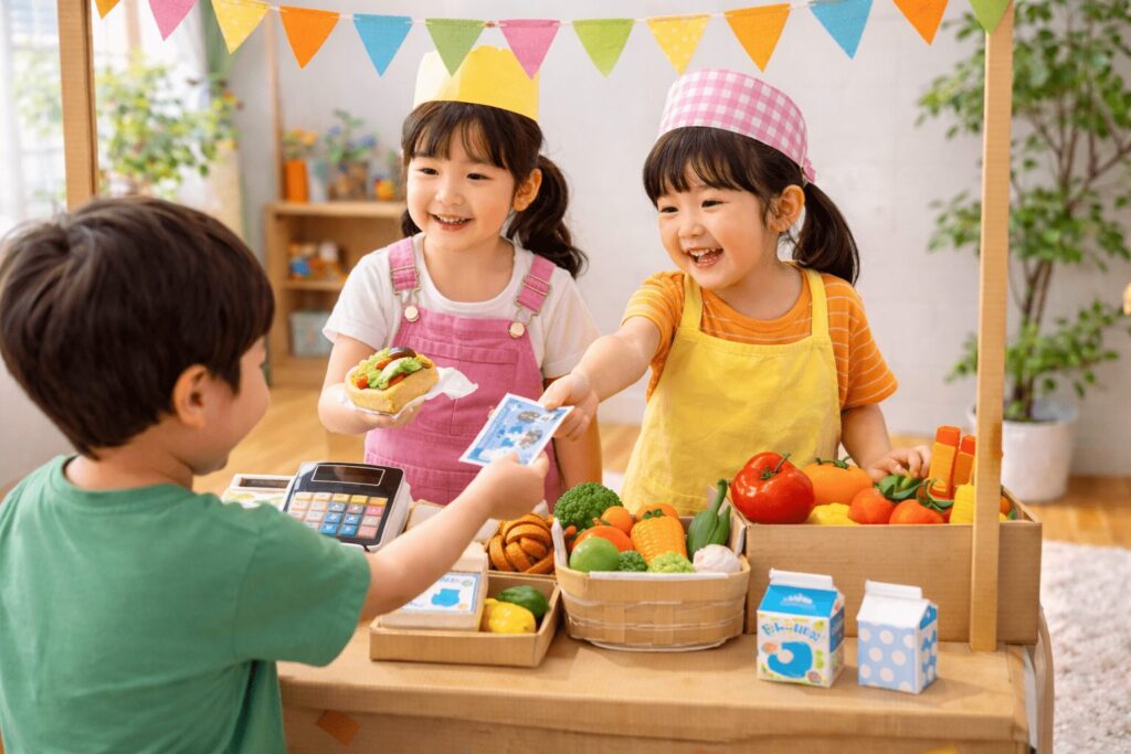 最後に売上を数えて「今日の人気商品」を発表すると達成感が残り、翌日も遊びが続きます。
