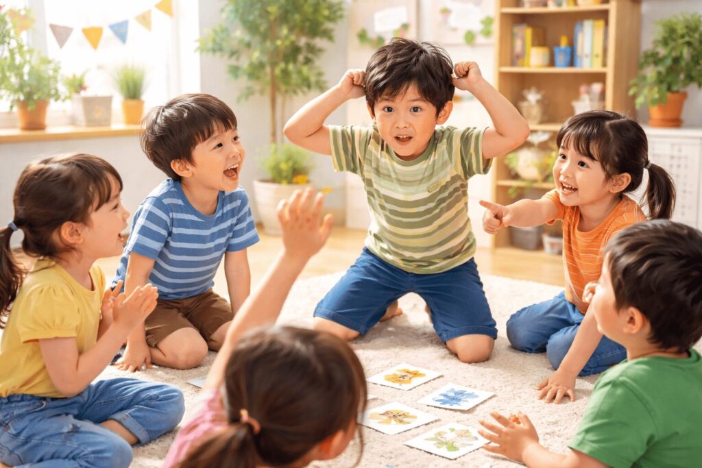 たとえばジェスチャーゲームは言葉を使わず伝える工夫が生まれ、しりとりやなぞなぞは遊びながら言葉の引き出しを増やしやすいでしょう。