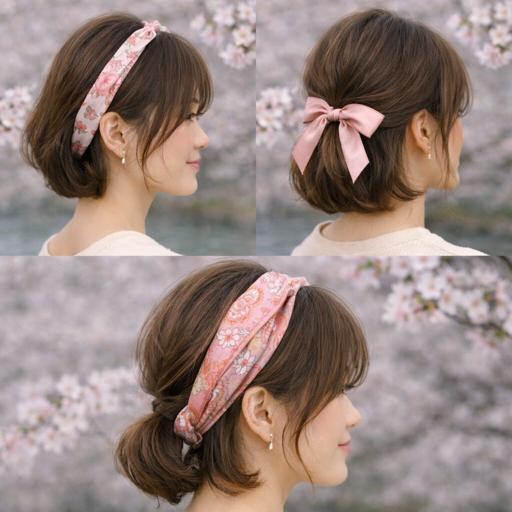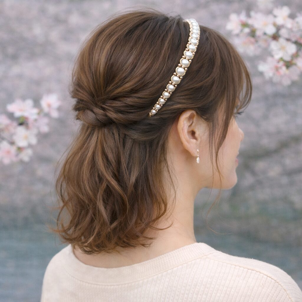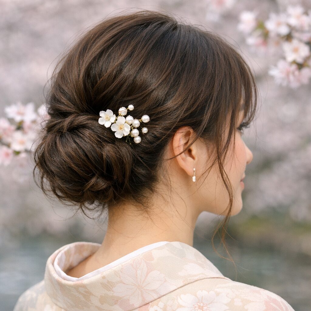 お花見のヘアスタイルを一層引き立てるには、ヘアアクセサリー選びが重要です。