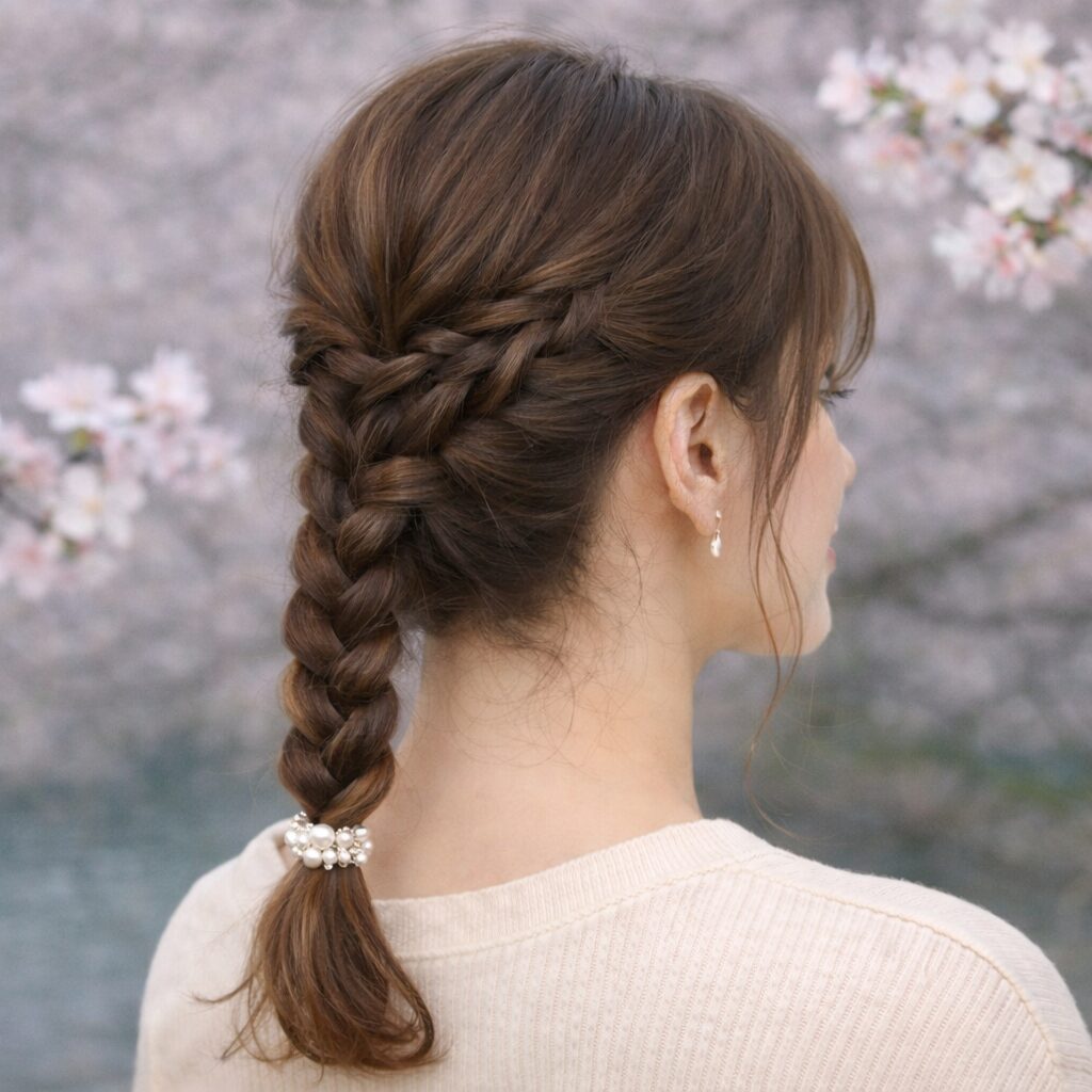お花見のヘアスタイルで大切なのは、屋外でも崩れにくく、春らしい華やかさを演出できることです。